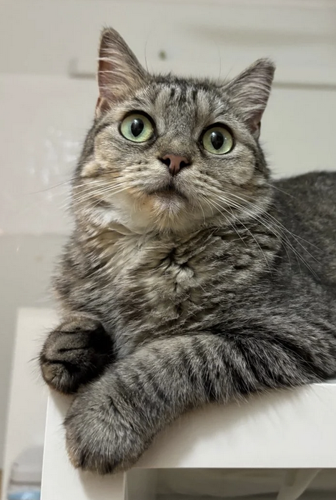 Hui Hui is an affectionate cat who enjoys human interaction. He was found sleeping in the basket of a bicycle under a HDB void deck with a collar. We brought him in after community caretakers witnessed a neighbourhood kid kicking him in the face. We helped him to recover and now he's ready for a new home! He loves pats, will rub against strangers, and has a whole variety of meows, so you can never be bored of his "yapping". Likes to chill if he isnt eating or occassionally exploring for new places to lay flat on his side.